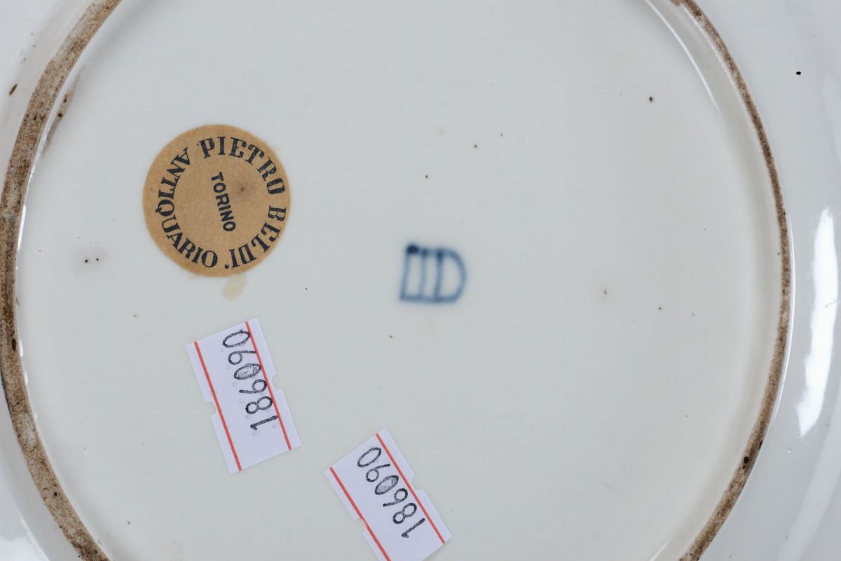 Un piatto. Vienna, 1770 circa. Marca: scudo in blu. Diam. cm 24,7. Tre sbeccature al bordo