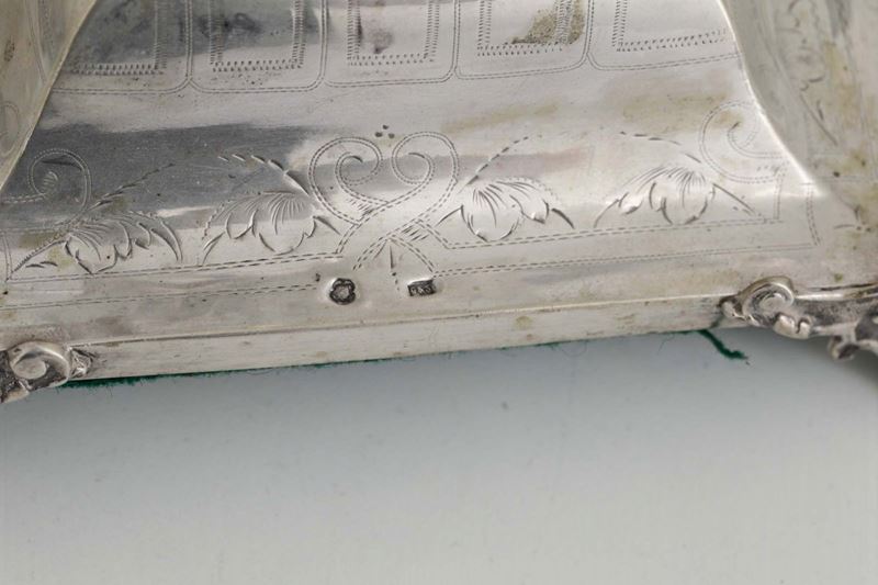 A pair of candlesticks in molten, embossed and chiselled silver. Austro-Hungarian manufacture from the 19th century