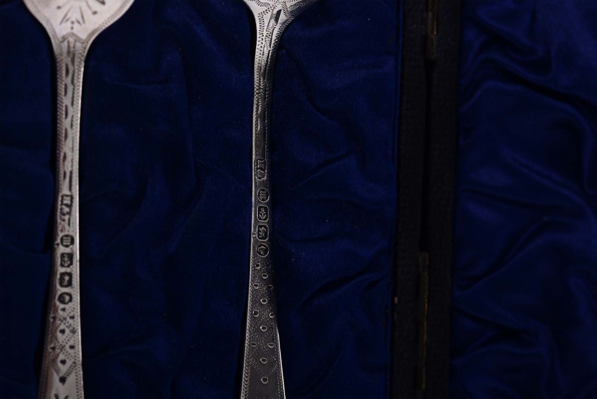 Posate per neonato in argento, Birmingham 1886, argentiere H&T
