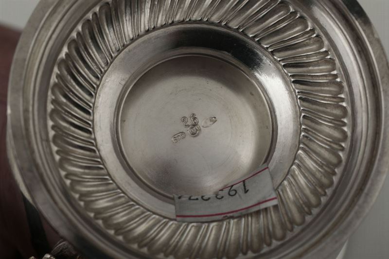 Servizio da tè e caffè in argento con lattiera e zuccheriera, manici in avorio, XX secolo