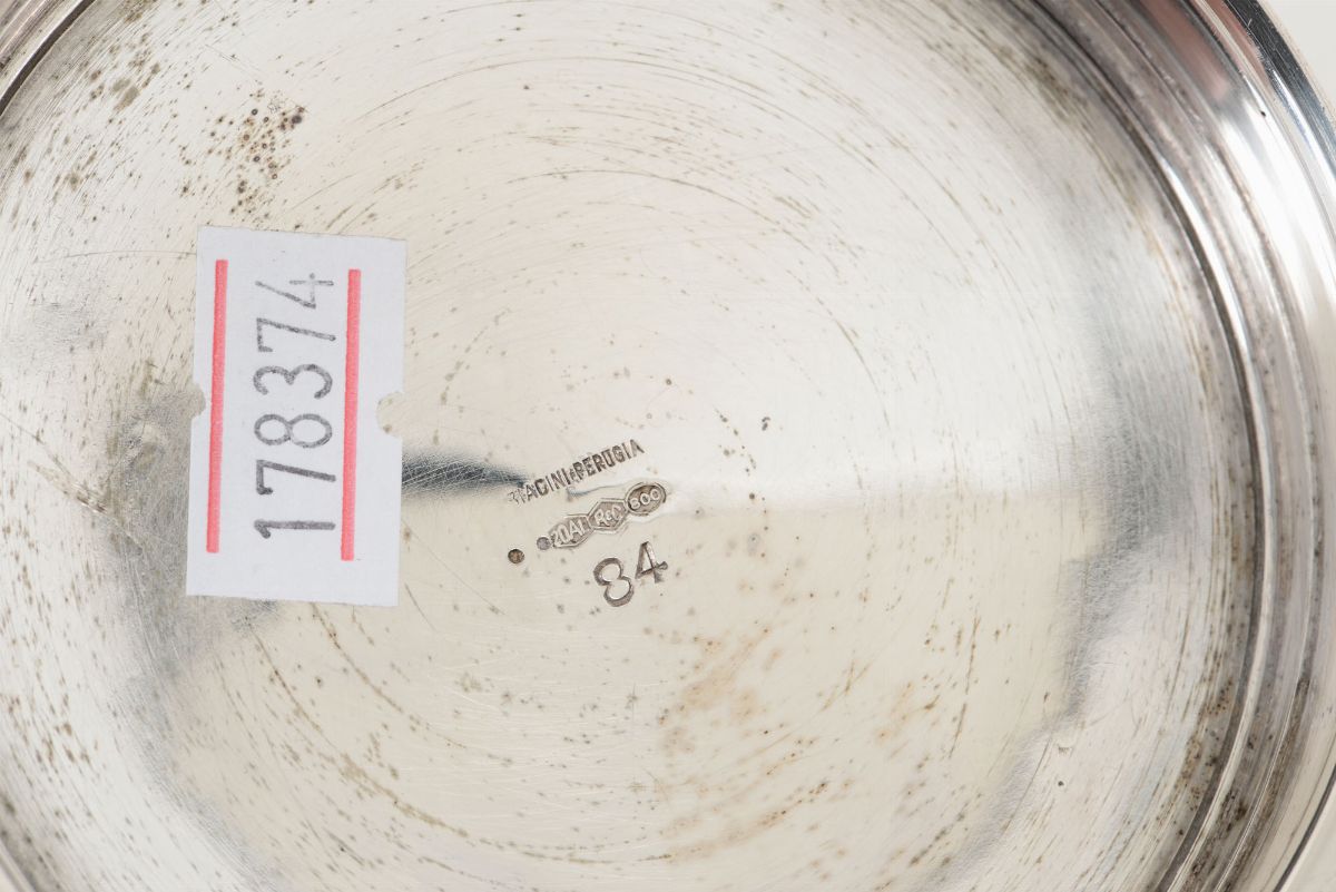 composto da teiera, caffettiera, lattiera, zuccheriera e vassoio a ringhiera in argento, cm 40x31, gr. 2.700 circa