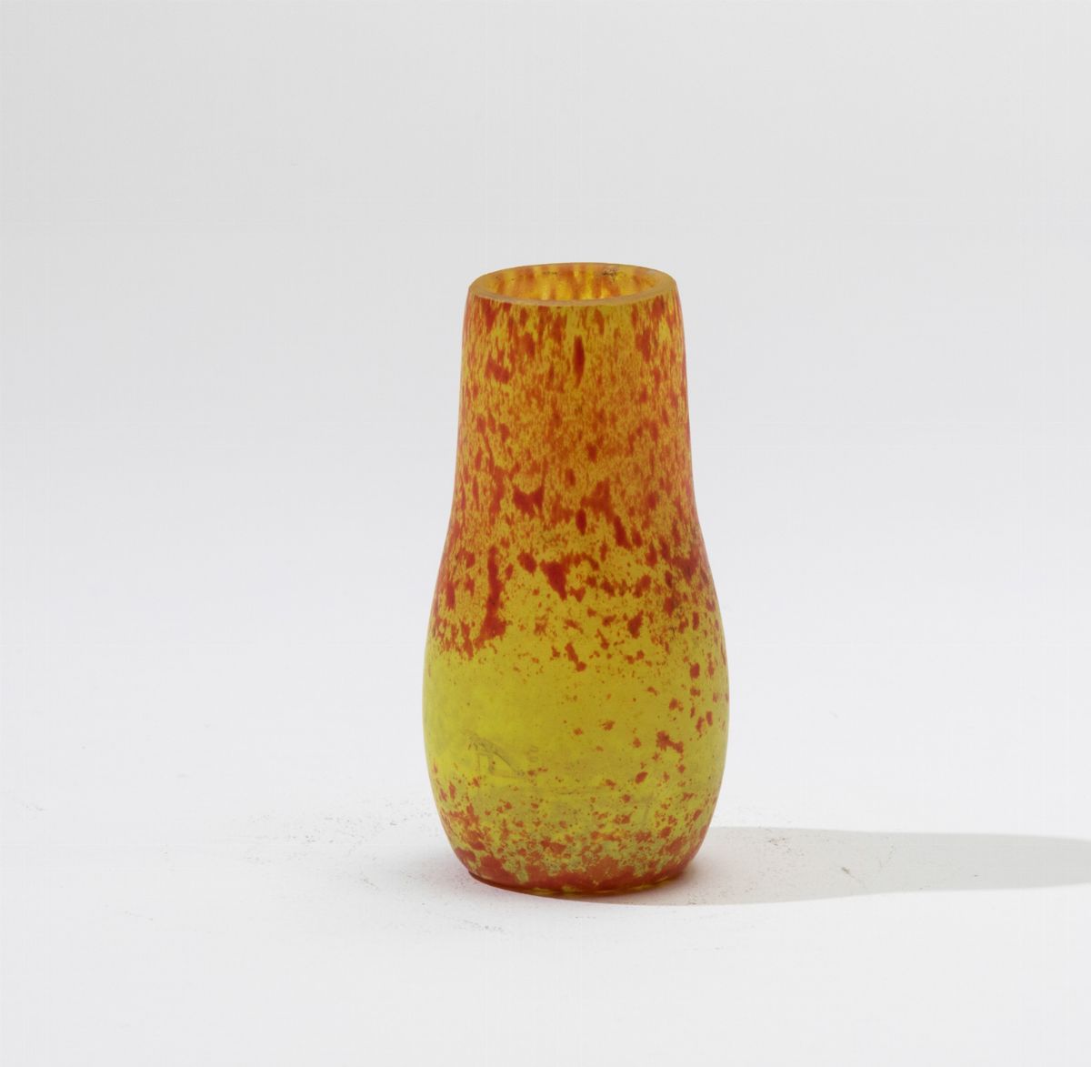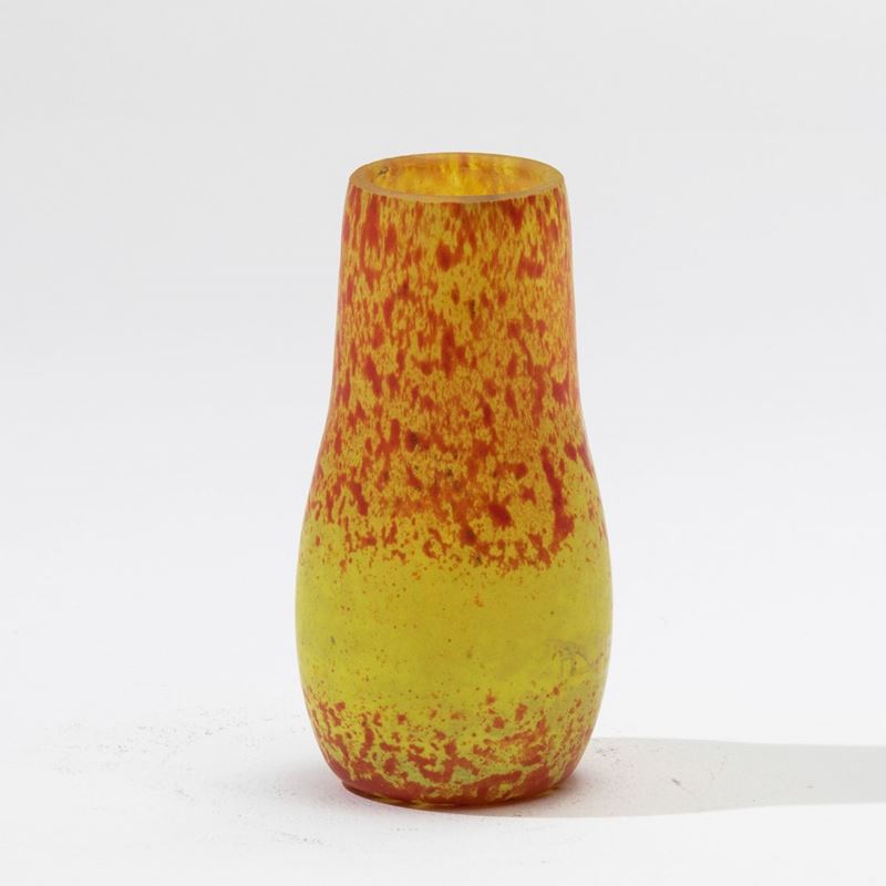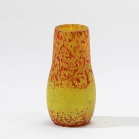 Vasetto in vetro screziato sui toni del giallo e dell’arancio.