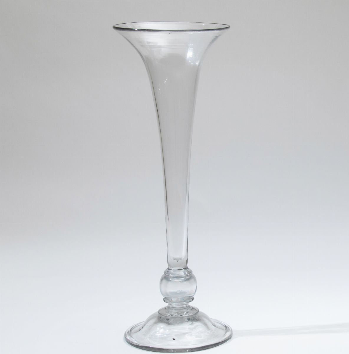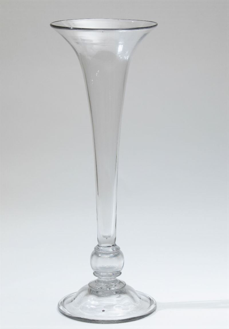 Vaso a tromba in vetro trasparente.