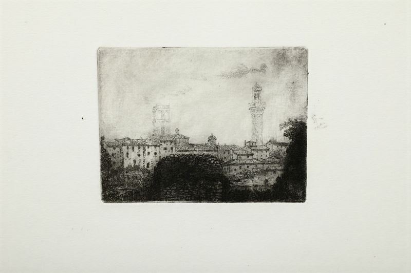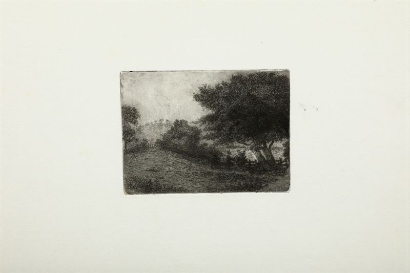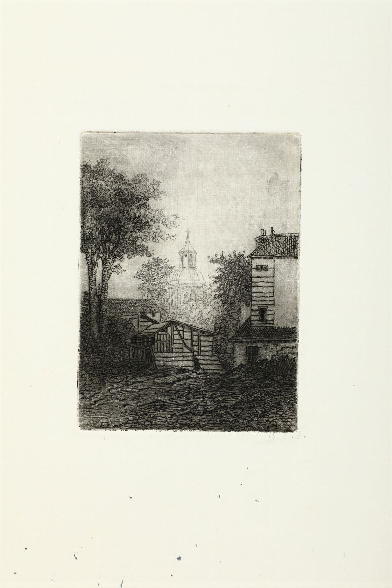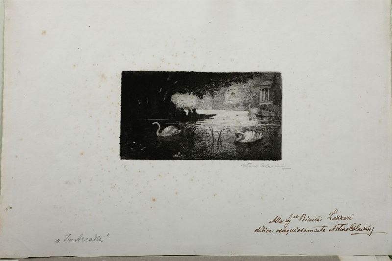 Tredici belle incisioni all'acquaforte, acquatinta (Alcuni esemplari ripetuti dalla stessa lastra). Le incisioni non sono firmate e si attribuiscono per deduzione dovuta ad affinità stilistica, al pittore friulano. Solo una intitolata In Arcadia è infatti firmata a matita in basso a destra e presenta una dedica autografa dell'artista.
