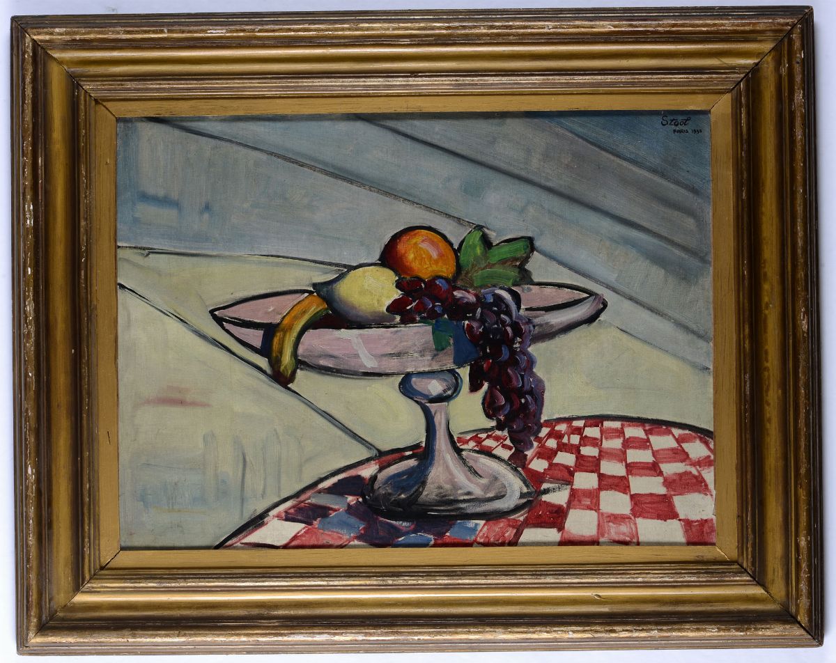 Grande natura morta anni 30, olio su compensato, firmata Stool Paris e datata 1930, in cornice