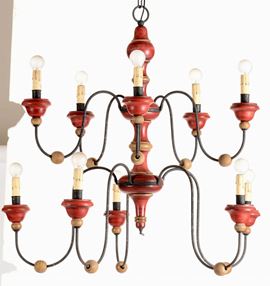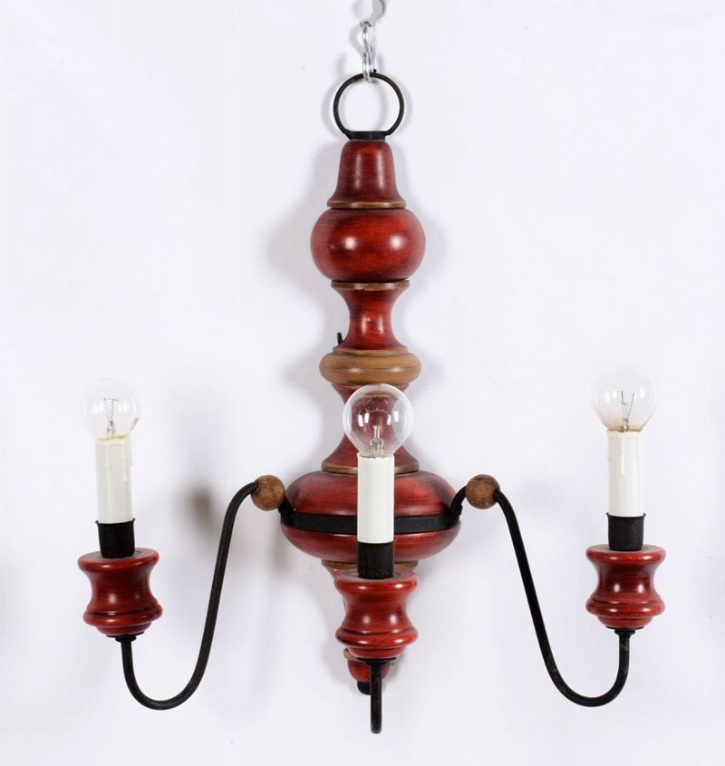 Lampadario e tre applique in legno dipinto