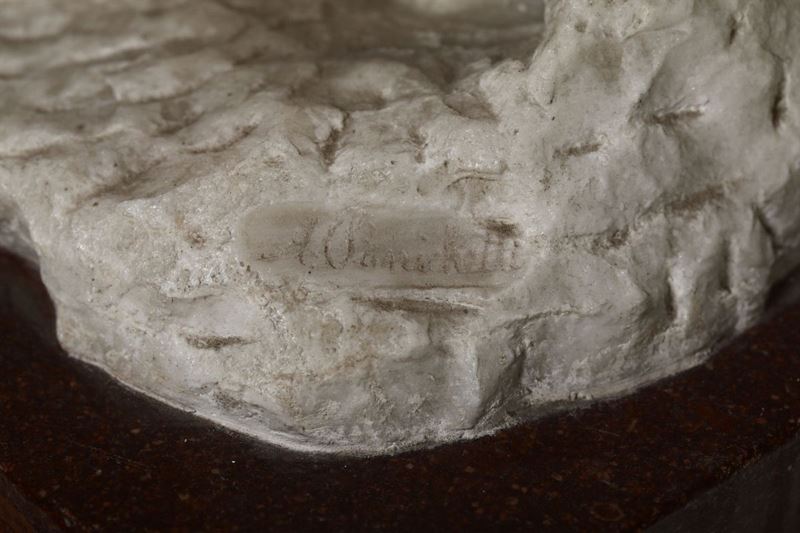 Scultura in marmo raffigurante bimbo con martello, XX secolo