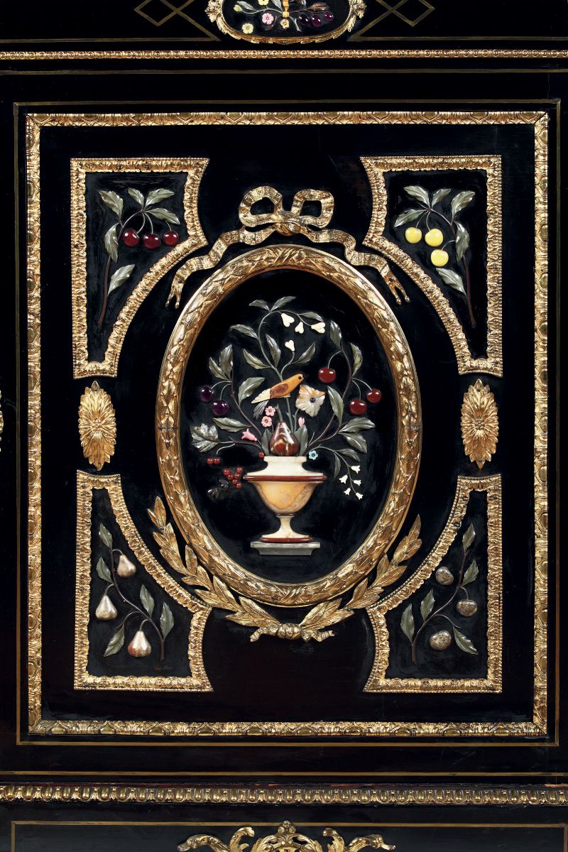 Ebonised wood with semiprecious stones and gilt bronze. 184x48x116cm