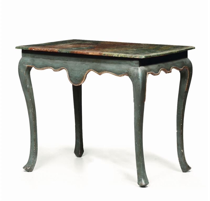 piano a finto marmo, fascia sagomata con profili dorati, cm 96x64x81
