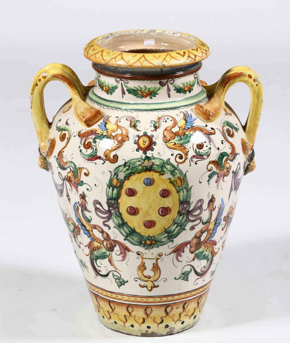 Maiolica policroma a gran fuoco. Marca: assente. Altezza cm 60