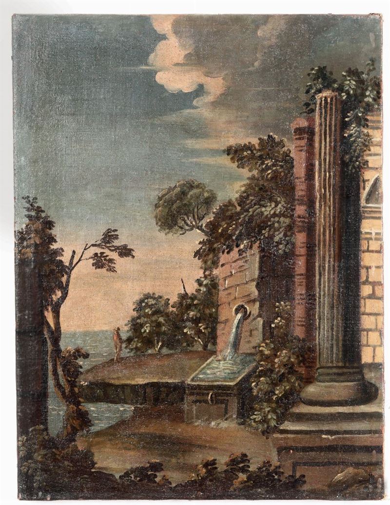 Scuola del XVIII secolo Paesaggi con architetture e figure
