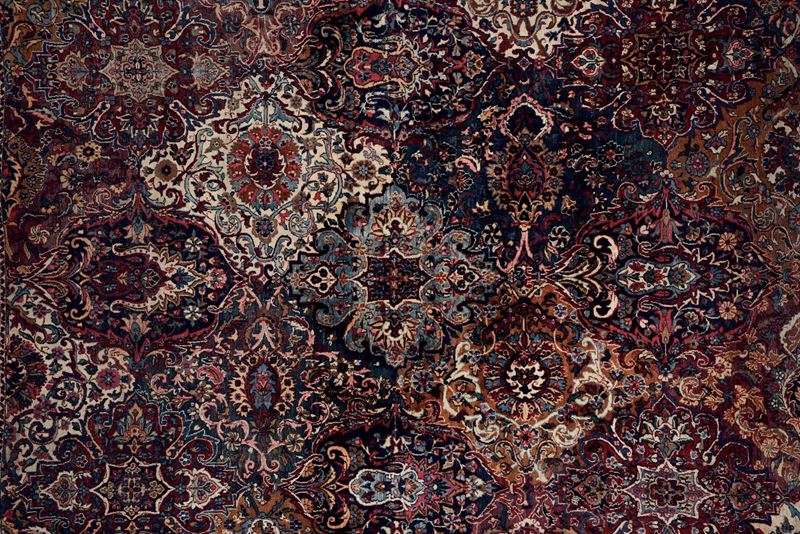 campo a rombi con decoro floreale, cm 416x365. Firmato nella testata superiore.