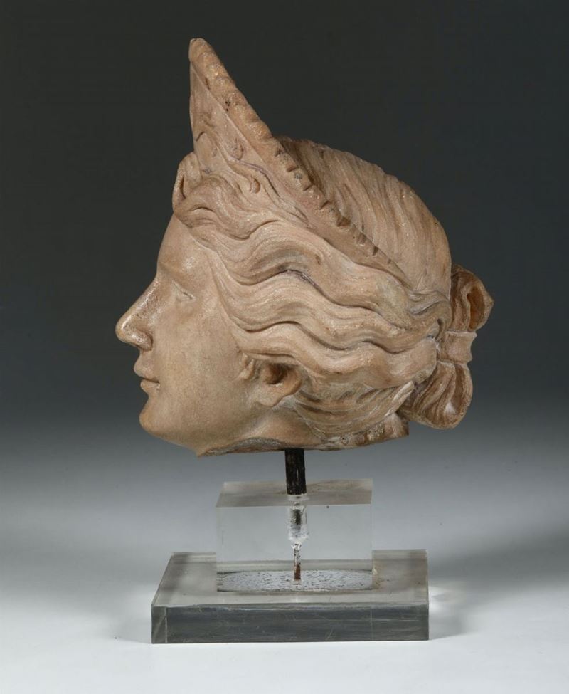 Testina femminile in marmo raffigurante Dea. Scultore neoclassico del XIX secolo