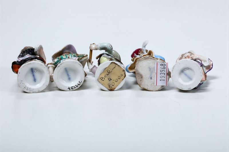 Cinque figurine Meissen (una statuina) e Berlino (quattro statuine), XIX secolo