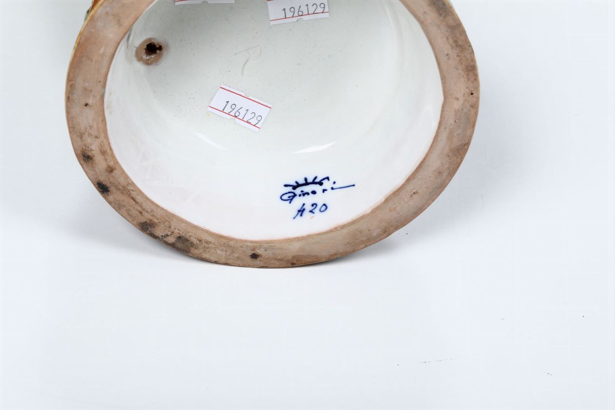 Maiolica. Marca: “Ginori” con corona, numero “420” in blu; “U.Lucchesi” inciso appena visibile. Altezza cm 33,5. Testa rincollata in restauro