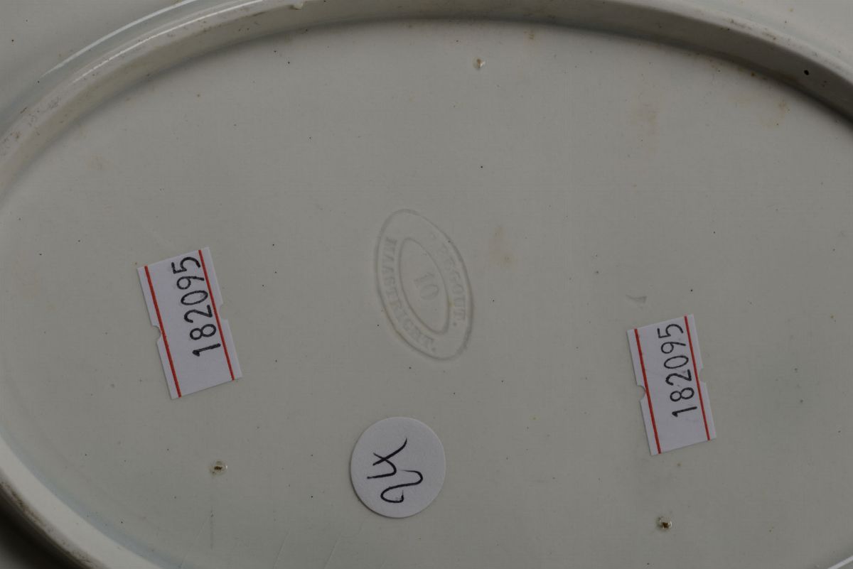 Terraglia. Marca: R.Regoot Maastricht impresso. Altezza cm 4,2; 30 x 20,5. Ottimo stato