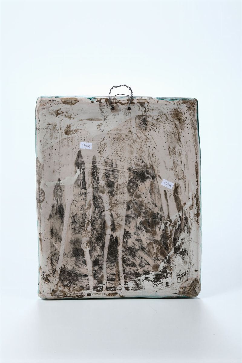 Maiolica a gran fuoco. Marca: assente. Dimensioni cm 37,5 x 30