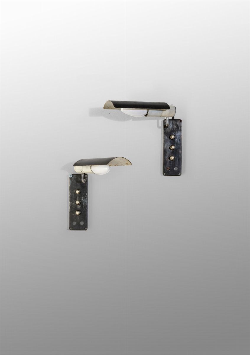 Coppia di appliques in metallo laccato mod. 222 con diffusore orientabile.