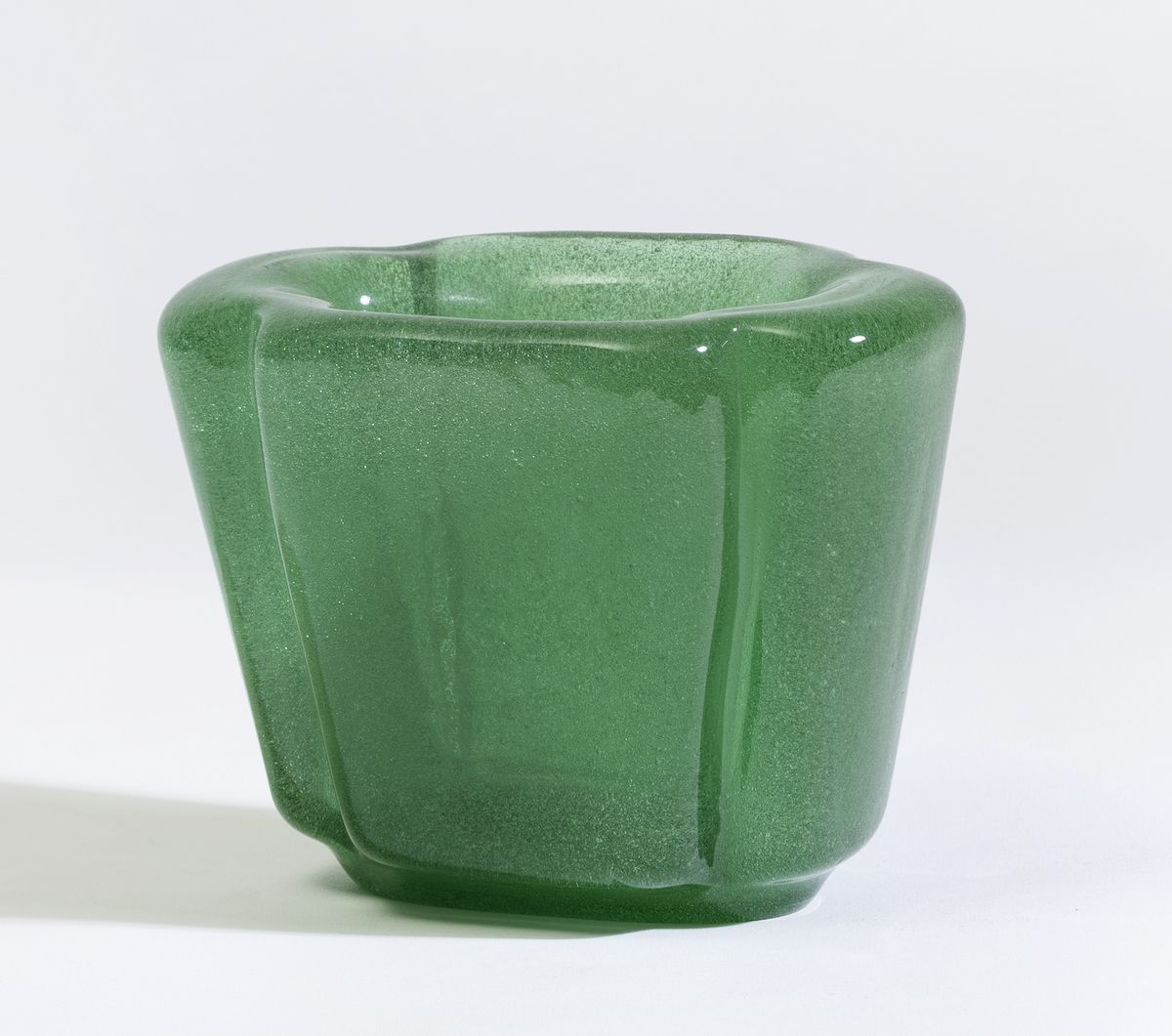 A vase from the Bollicine series in blown glass. H 12cm, 16x10.5cm. Bibliography: M. Barovier, a cura di, Carlo Scarpa: Venini 1932 - 1947, Catalogo della mostra (Isola di San Giorgio Maggiore, 29 Agosto – 29 Novembre 2012), Milano 2012, p. 117