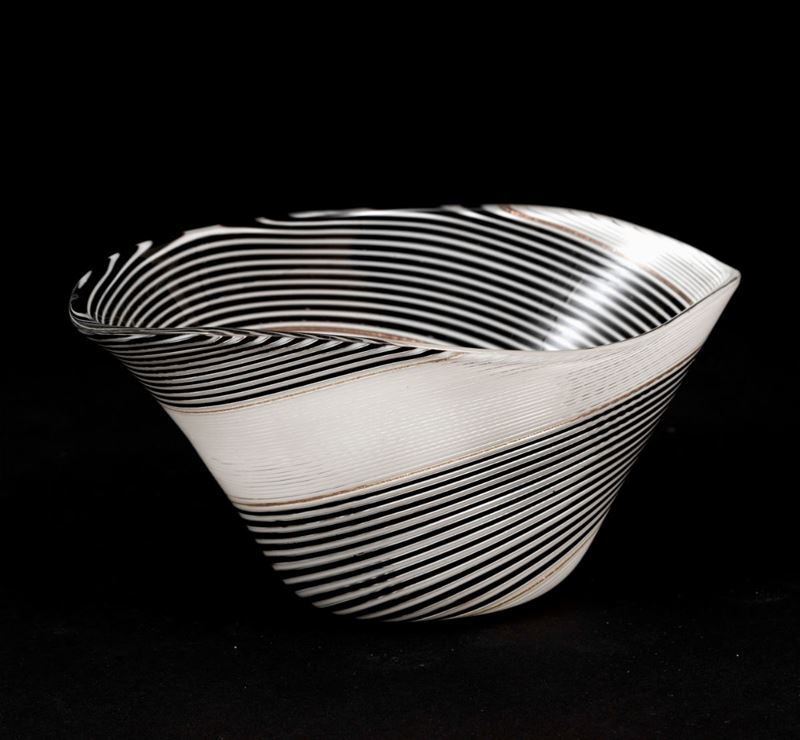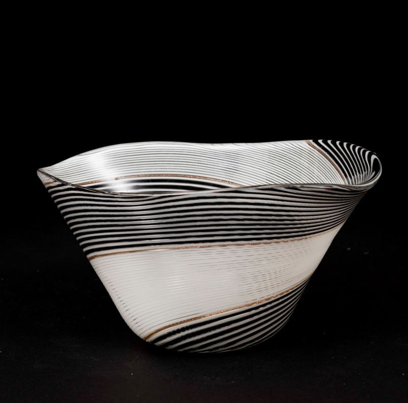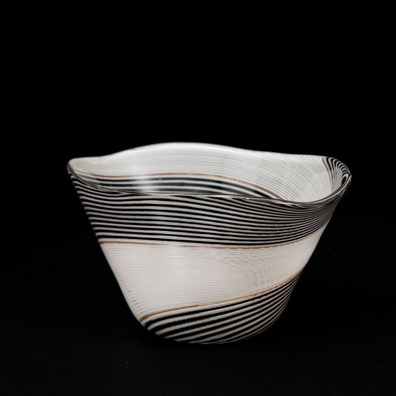 A cup from the Filigrana series. H 10.5cm, 21x14.5cm. Bibliography: M. Heiremans, Vetreria Aureliano Toso, Murano 1938 โ 1968, Stoccarda 2016, p. 68
