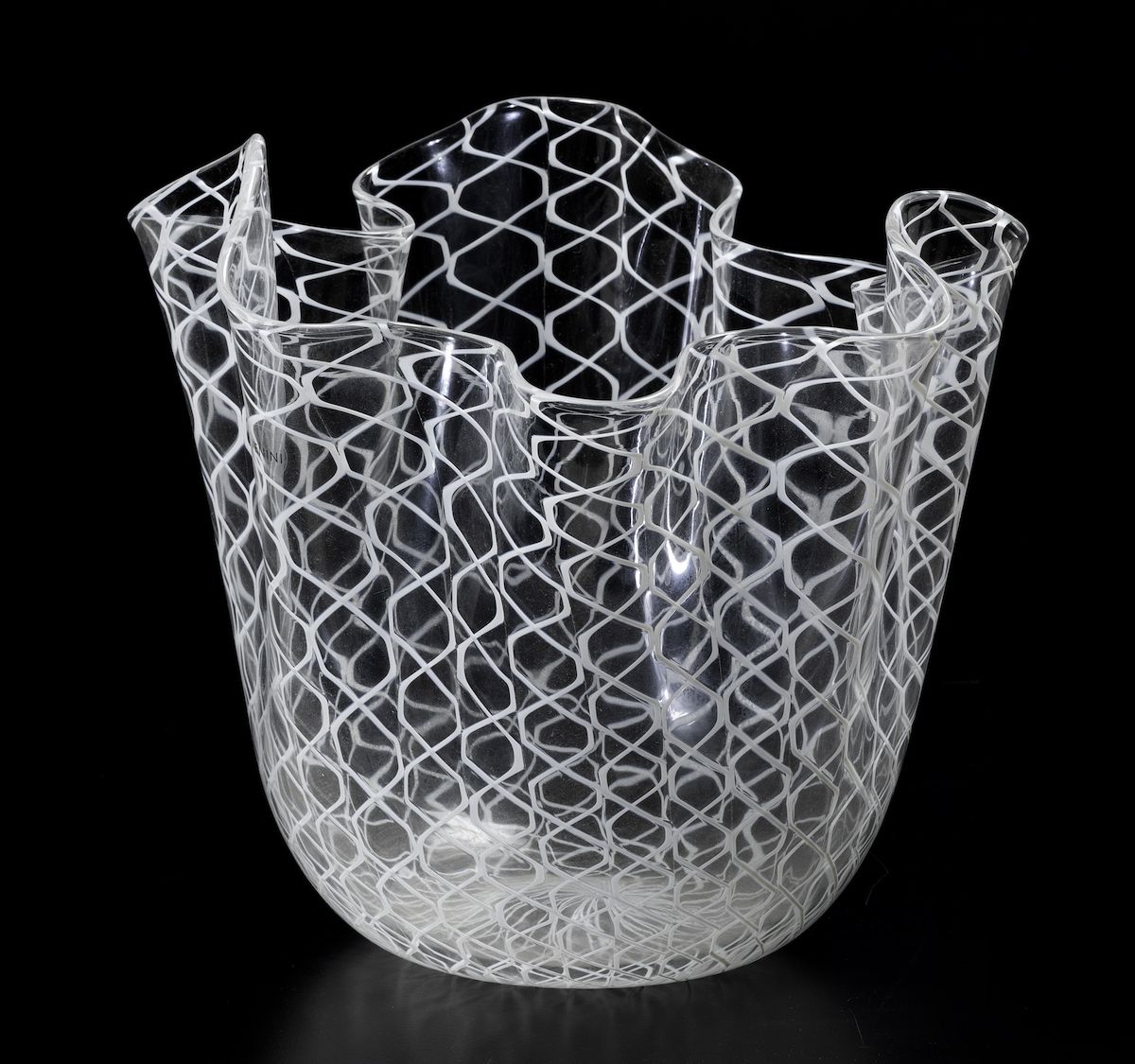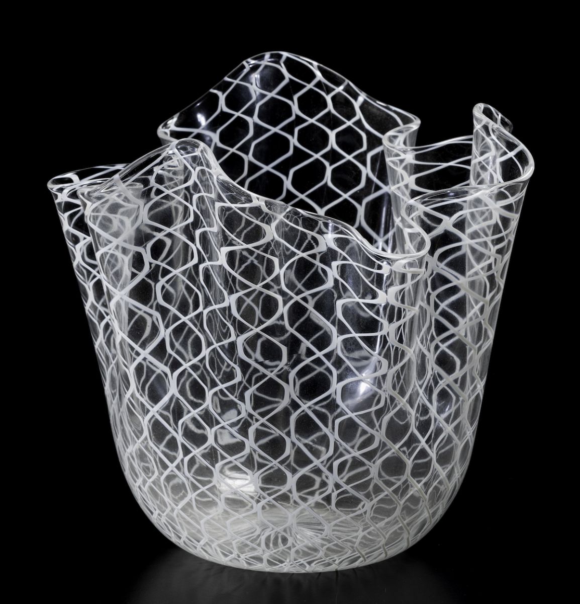 A handkerchief vase in blown glass. H 22cm, diam 21cm.