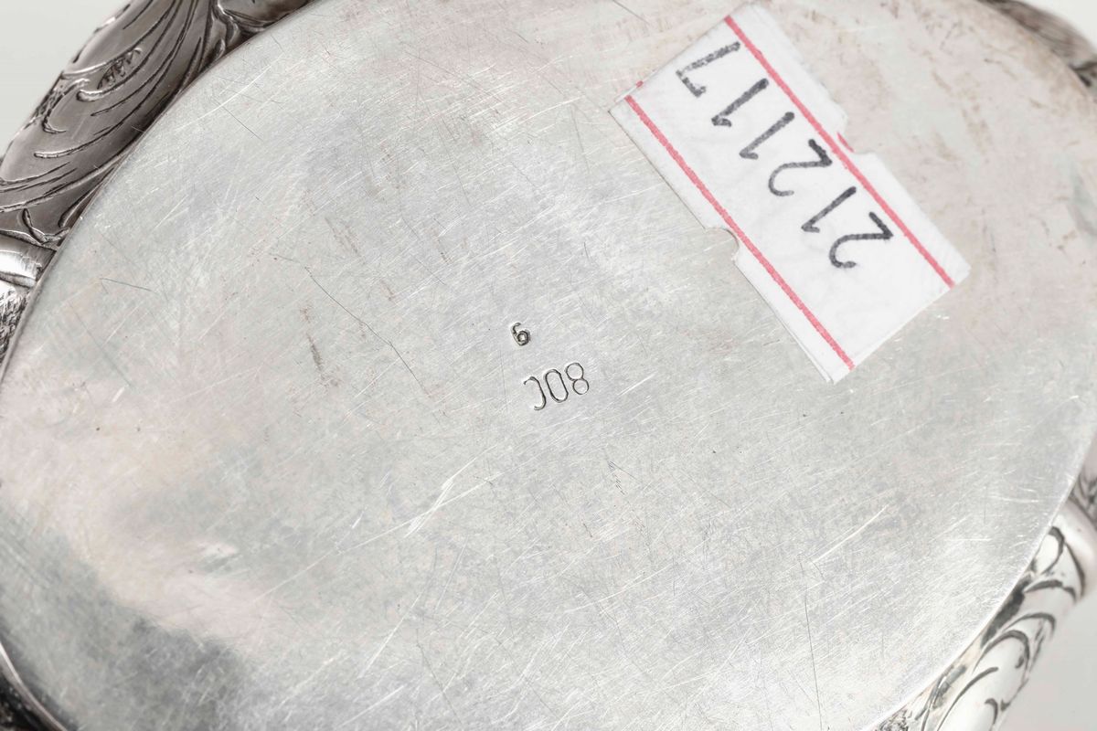 Three cases in molten and chiselled silver. 535gr, 12.5x9, 12x9cm and 9x6.5