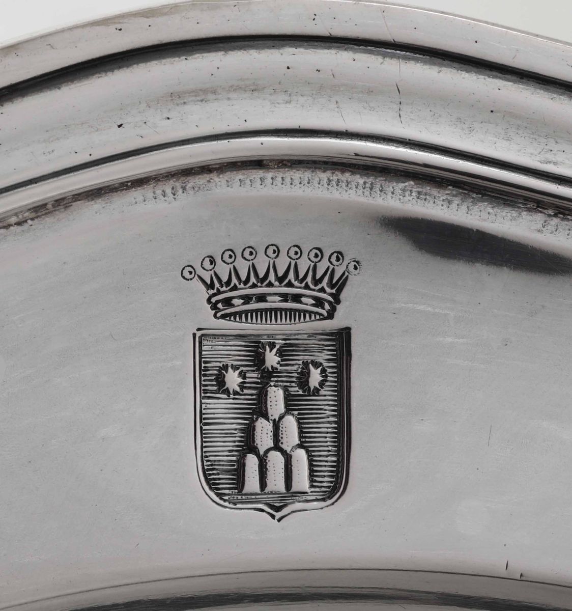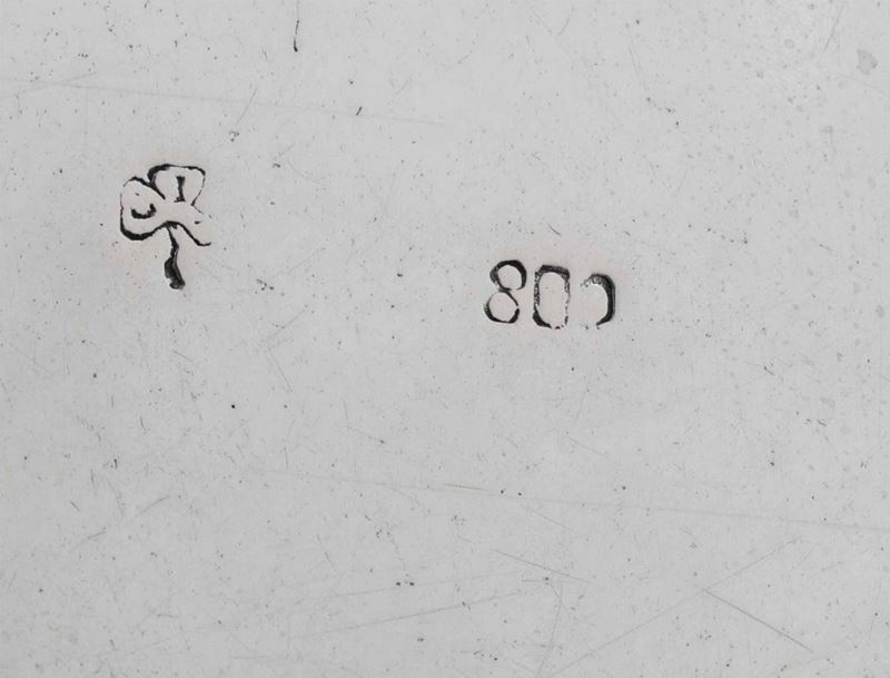 Molten and chiselled silver. 503gr, diam. 27cm.
