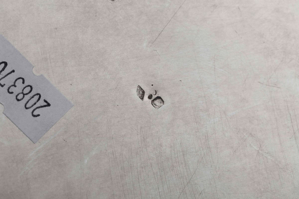 Molten, embossed and chiselled first title silver, ebonised wood handle. 260gr, H 15cm