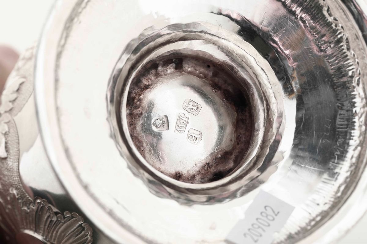 Molten, embossed and chiselled silver. 640gr, H 18cm