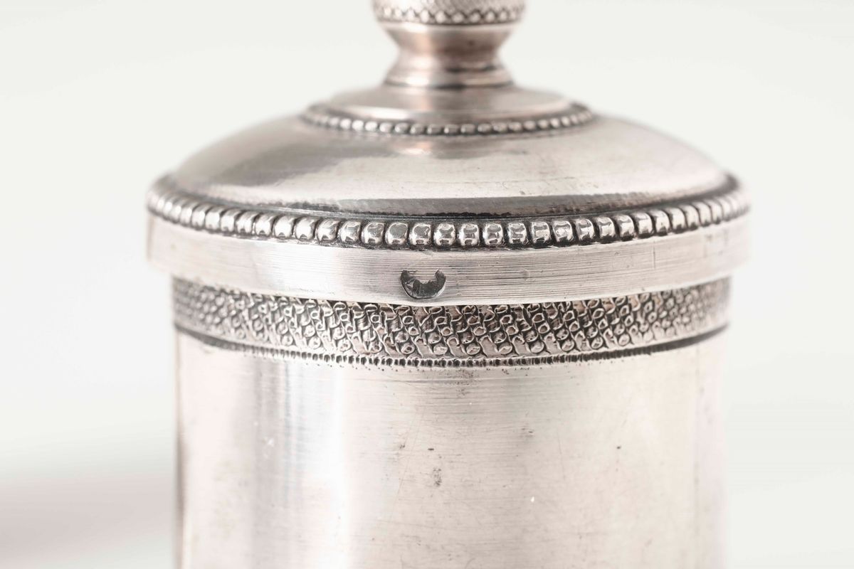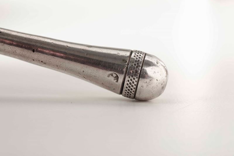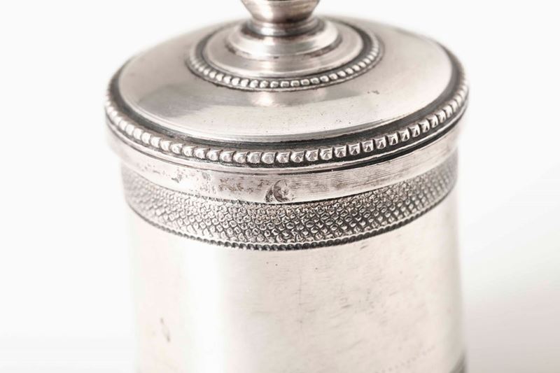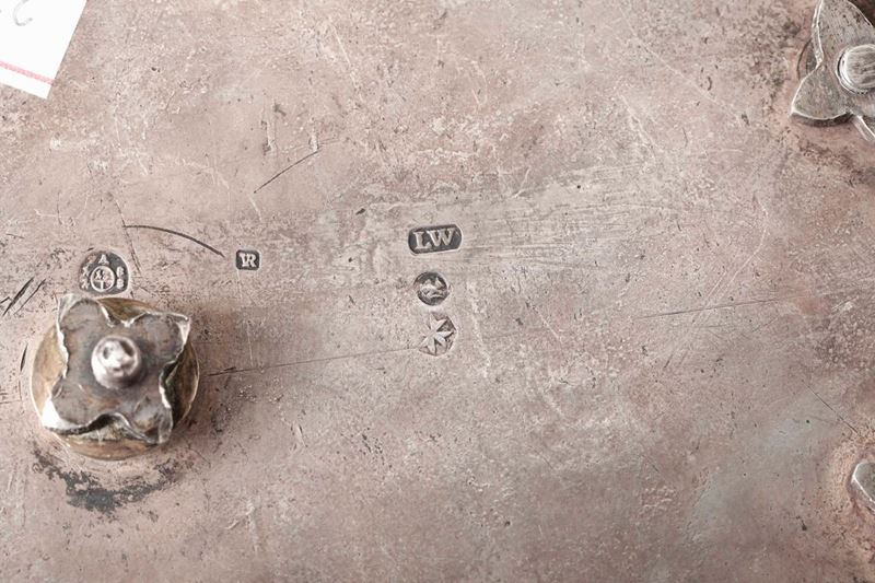 Molten, embossed and chiselled silver. Unidentified silversmith's mark LW. 870gr, 23x13.5x13.5cm
