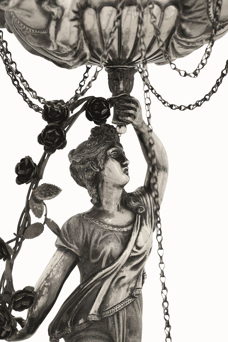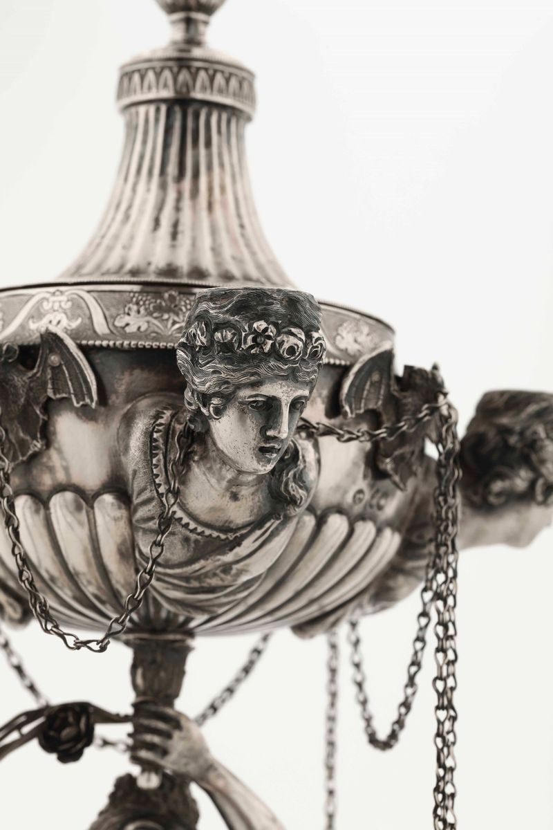 A silver oil lamp, Lombardy-Veneto, 1800s