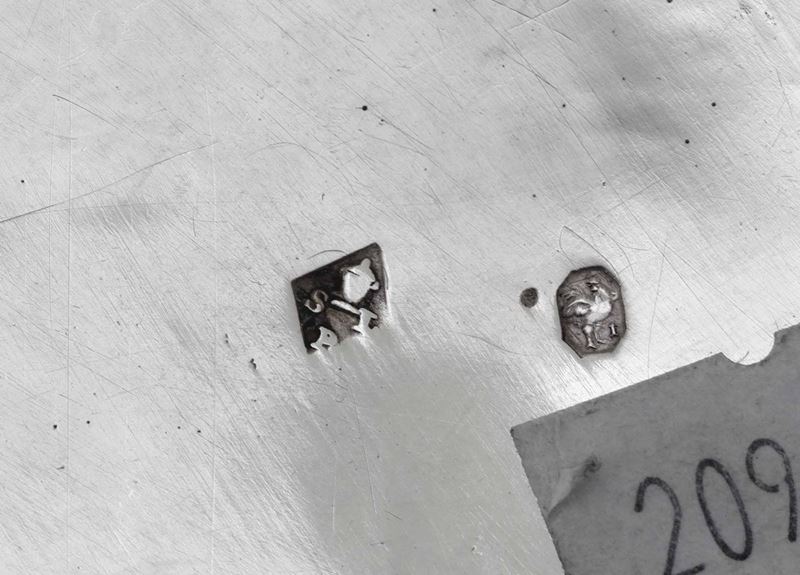 Silversmith SLP (unidentified). Molten, embossed and chiselled silver. 420gr, H 18cm