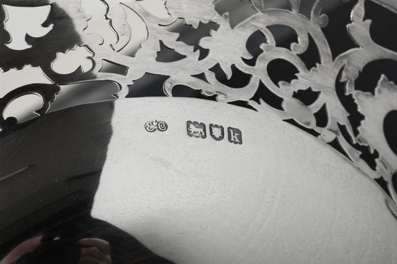 Molten and perforated silver and with a round base. 952gr, 15x38x29cm.
