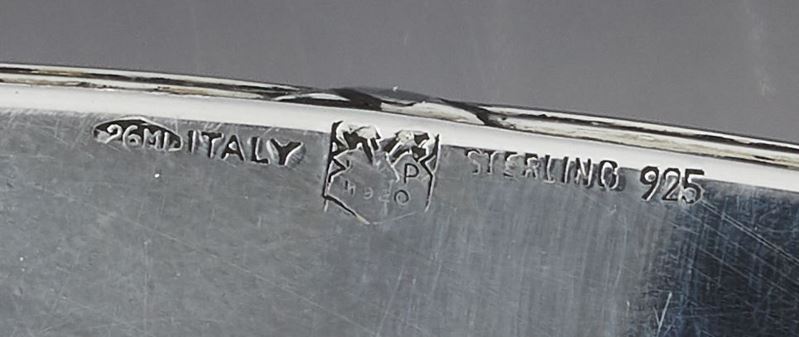 An oval tray in molten and perforated silver. 1550gr, 53.5x29.3cm