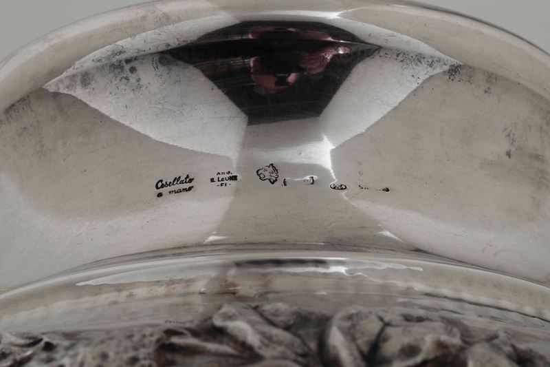 A large vase in hand chiselled, sterling silver, made by Il Limone. 2190gr, H 40cm.