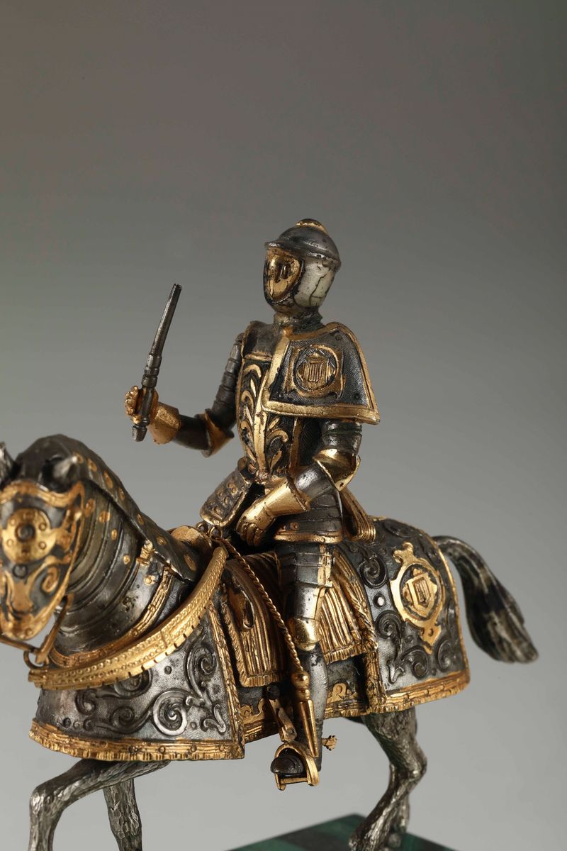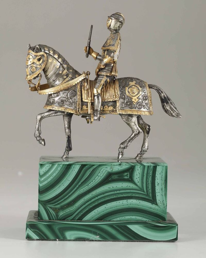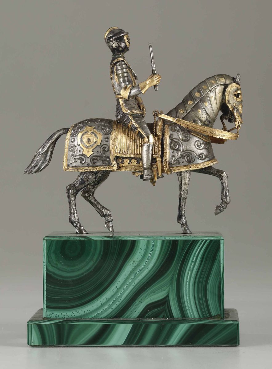 Silver and gilt silver on a malachite base. 11x7.5x17