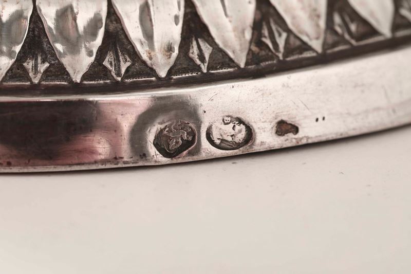 Molten, embossed and chiselled silver. First quarter of the 1800s. 717gr, 27cm.