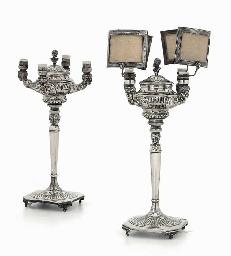 Two molten and chiselled lamps. Weighted bases. Height 40cm.