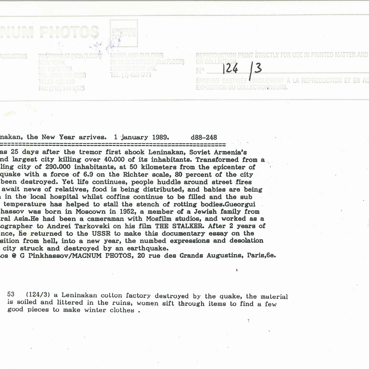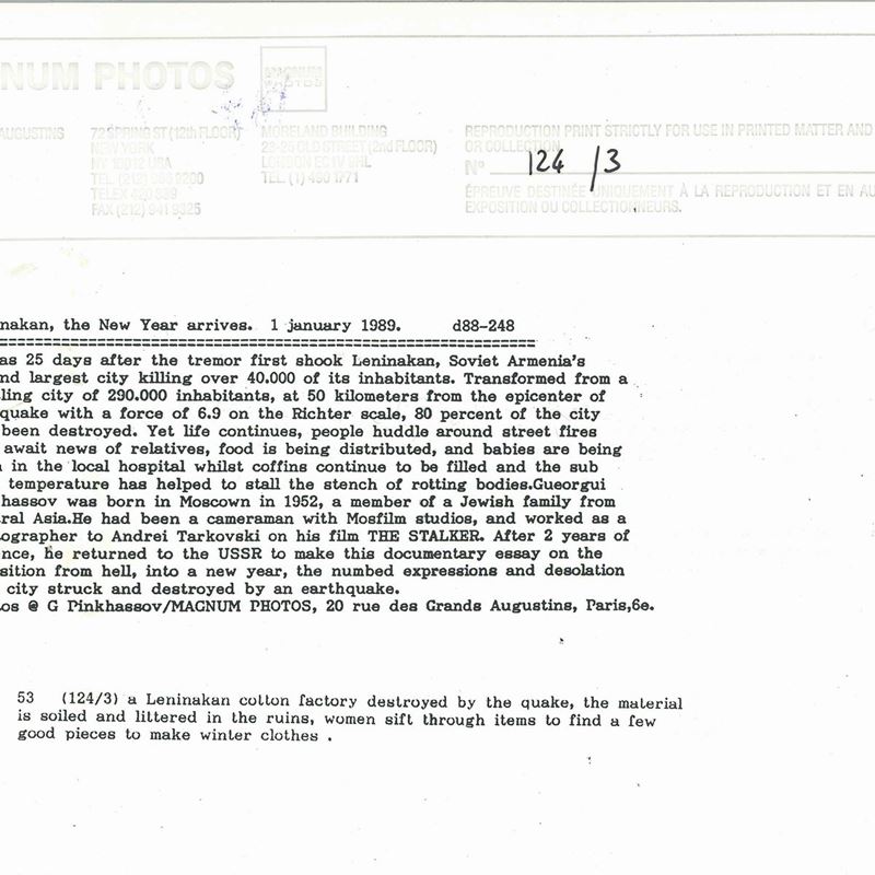 Gueorgui Pinkhassov (1952) A Leninakan cotton factory destroyed by the quake, the New Year arrives. 1 January, 1989