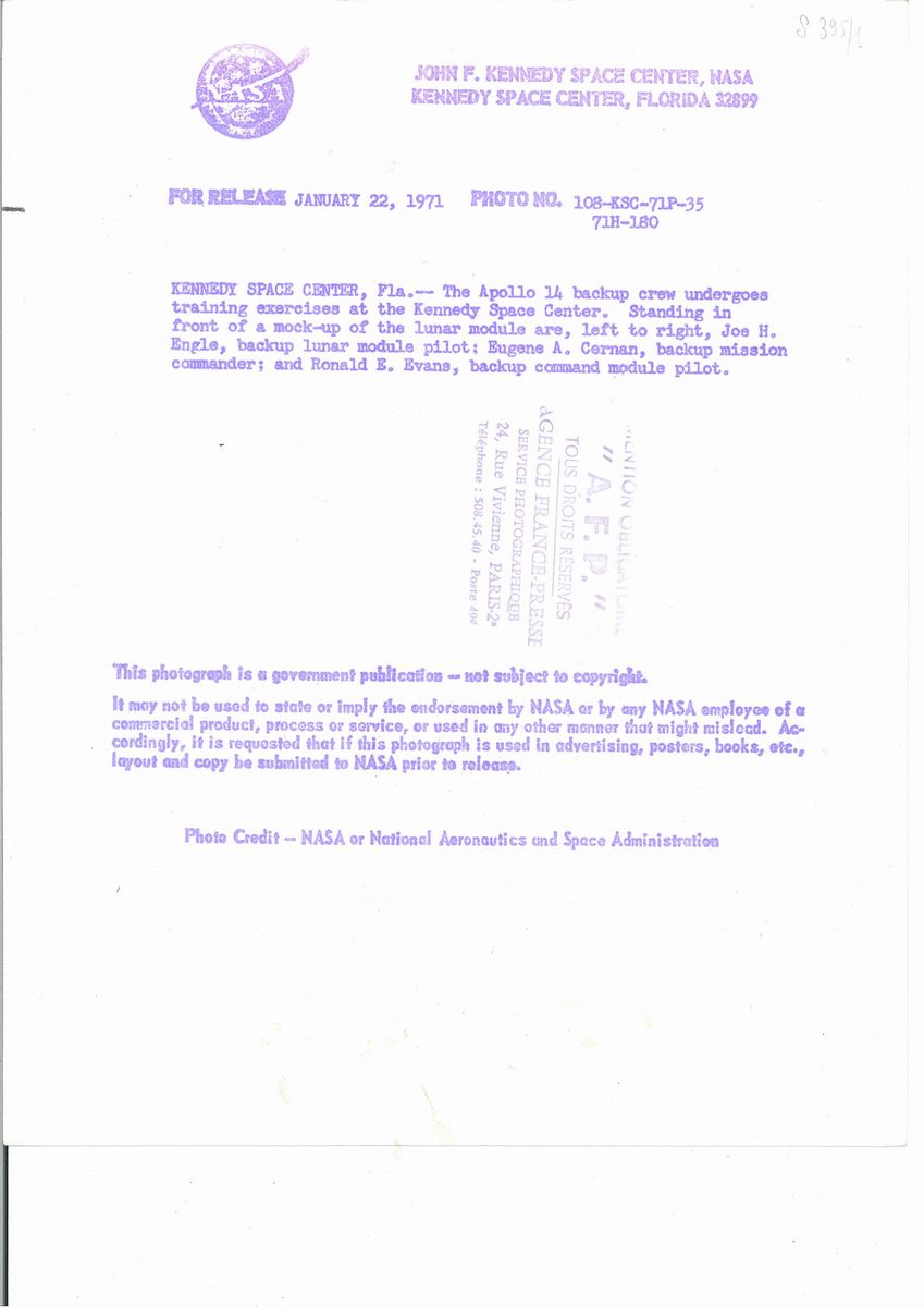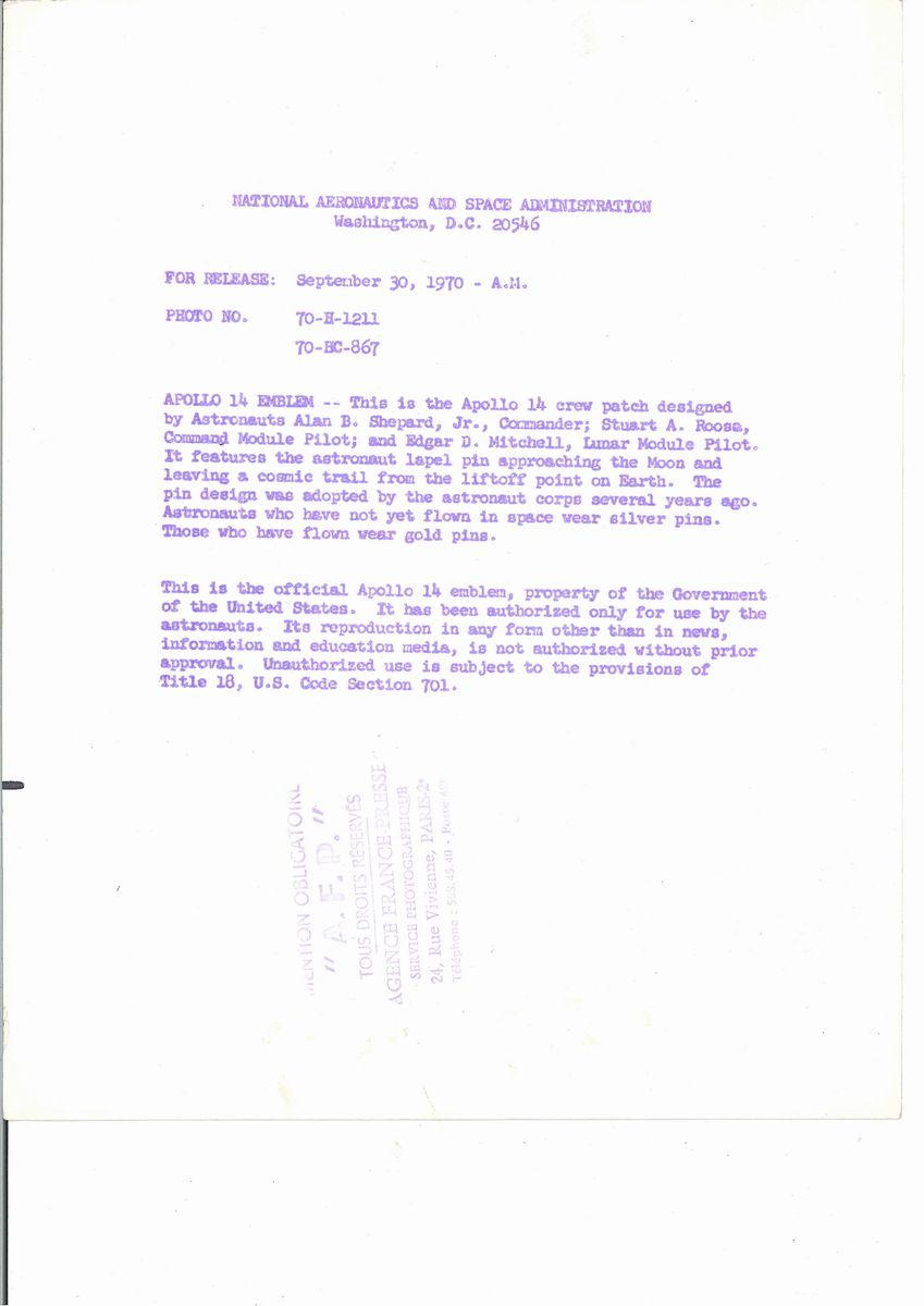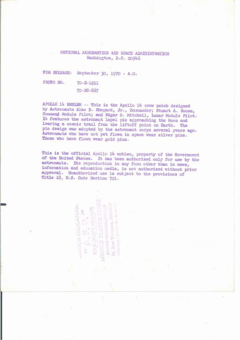 NASA Preparazione lancio Apollo XIV e stemma missione