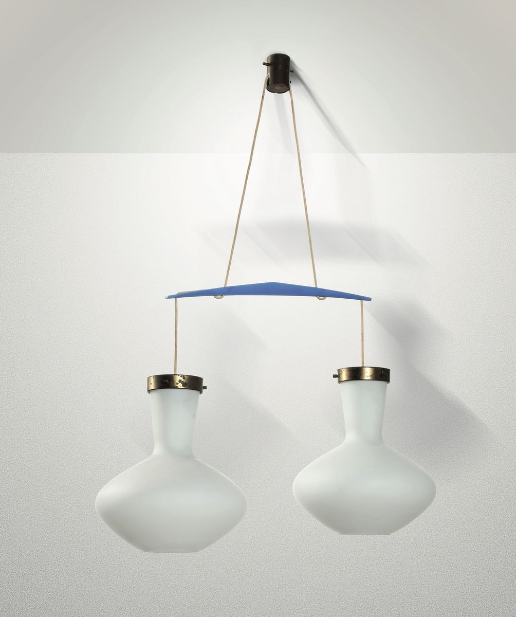 Brass and plexiglass structure and opaline glass diffusers. 70x30x100cm