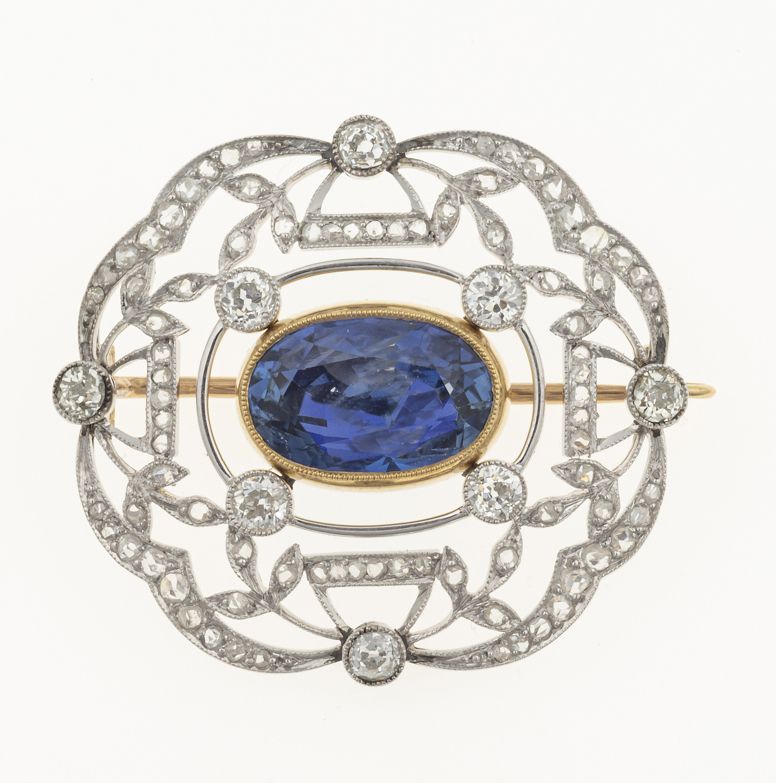 Sri Lankan sapphire and diamond brooch. Gemmological Report IGI n. 46622. No indications of heating