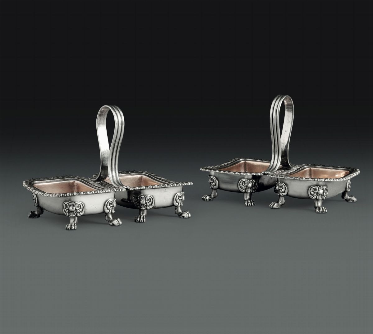 Coppia di saliere in argento. Manifattura francese del XX secolo. Maison Odiot, Parigi
