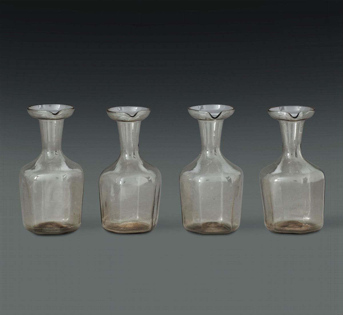 Due ampolle per olio e due per aceto Murano, probabilmente Venini, 1930 circa