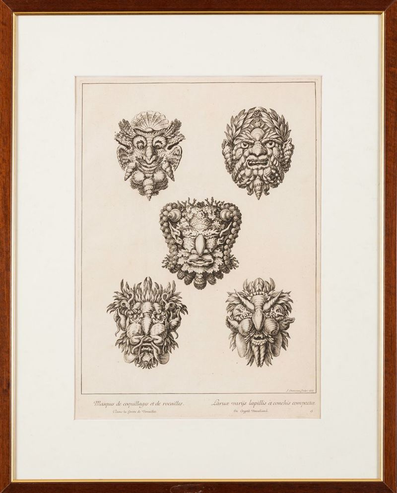Francois Chauveau (Parigi 1613-1676) Masques de coquillage et de recailles dans la grotte de Versailles