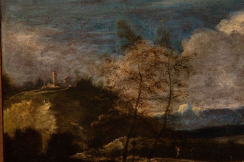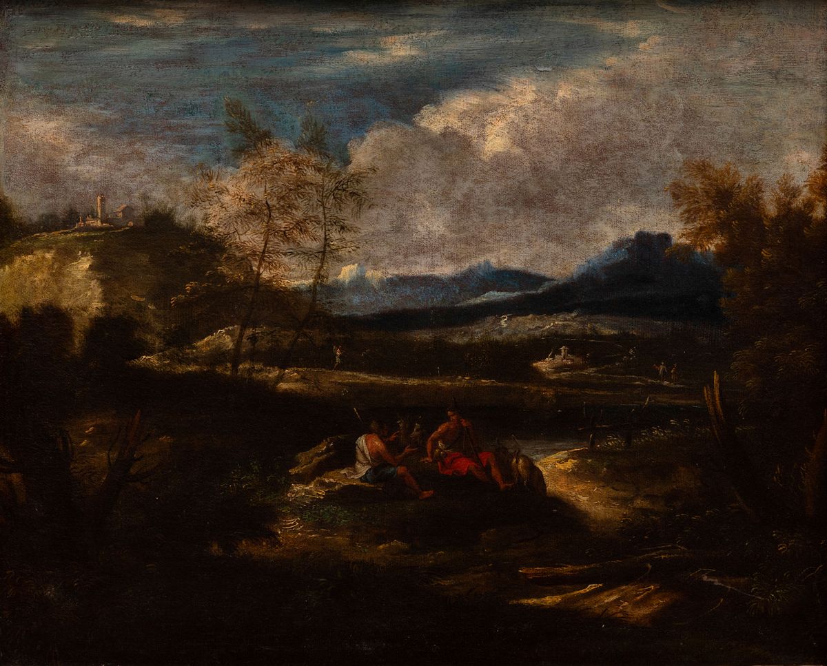 Scuola veneta del XVIII secolo Figure entro paesaggio