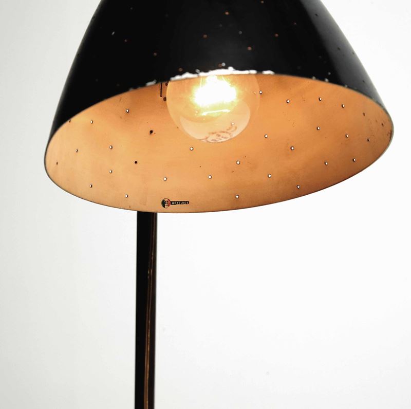 con struttura in ottone e diffusore regolabile con contrappeso in alluminio laccato.