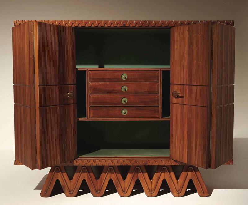 Mobile contenitore in legno con maniglie in ottone. Prod. Arredamenti Borsani, Italia, 1939