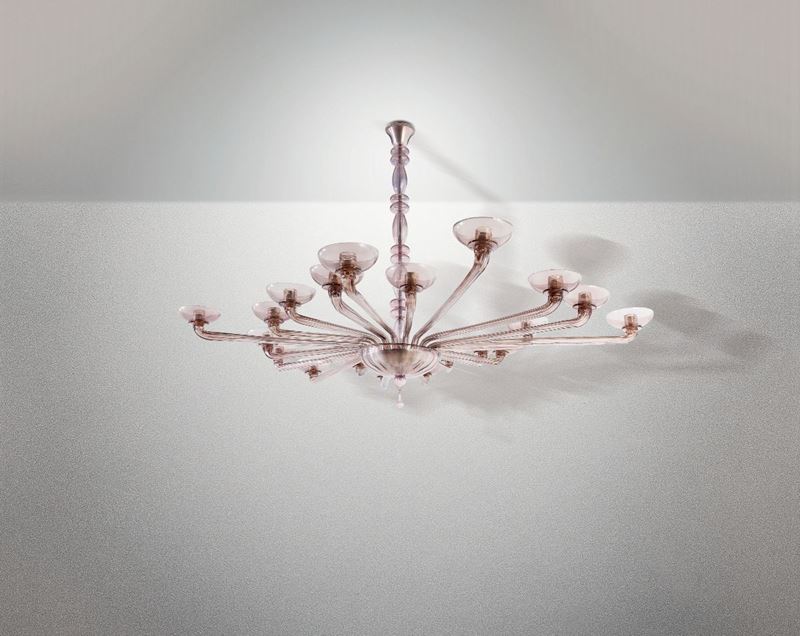 con struttura in metallo e vetro di Murano soffiato.