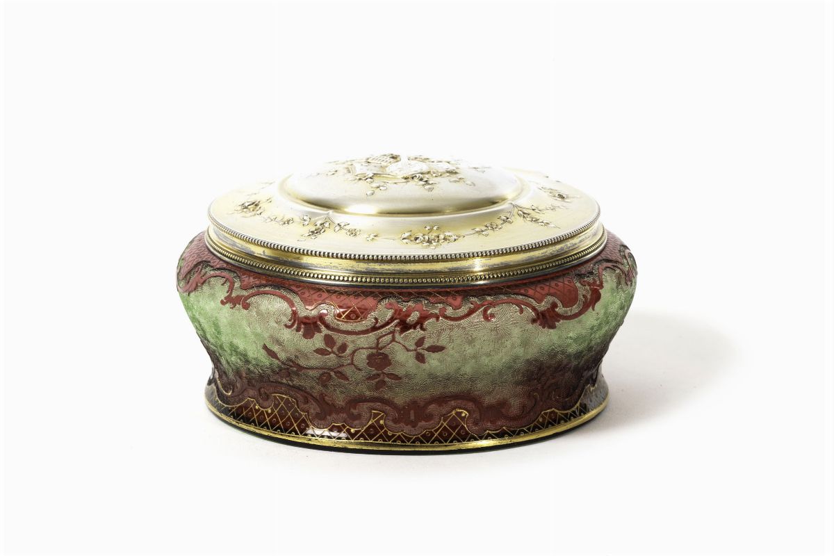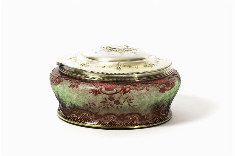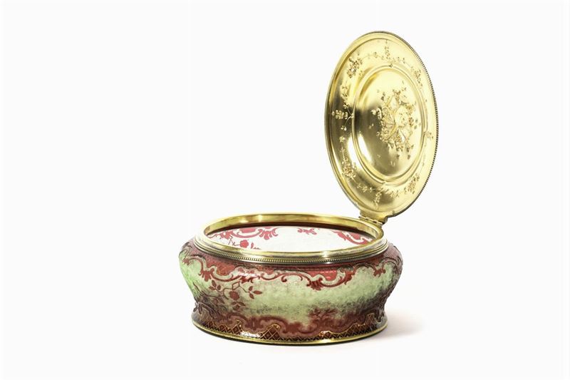 Scatola in vetro a cammeo a decoro floreale con coperchio in vermeil.